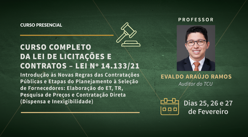 Home / CURSO COMPLETO DA LEI DE LICITAÇÕES E CONTRATOS – LEI Nº 14.133/21 Introdução às Novas Regras das Contratações Públicas e Etapas do Planejamento à Seleção de Fornecedores: Elaboração do ET, TR, Pesquisa de Preços e Contratação Direta (Dispensa e Inexigib